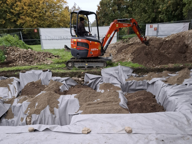 Im APC erhält die freigelegte Grabungsfläche der diesjährigen SCHAU! Grabung eine „Winterdecke“. So bleibt geschützt, was bereits Jahrtausende im Boden überdauert hat.