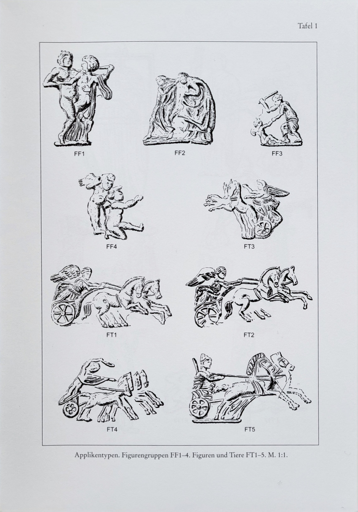 Ohlenroths Aufzeichnungen hat nun Dr. Sebastian Schmid von der Provinzialrömischen Archäologie der Ludwig-Maximilians-Universität München fast 65 Jahre nach dessen Tod überarbeitet, abgeschlossen und durch zahlreiche neue Farbfotos sowie Beiträgen zu Leben und Werk Ohlenroths ergänzt. In dieser Publikation, dem 9. Band der Cambodunumforschungen, sind auf mehr als 1200 Gefäßen insgesamt über 900 unterschiedliche Applikentypen dokumentiert. Unter den Darstellungen befinden sich nicht nur auch in Kempten häufig belegte Motive wie Masken, Hunde, Löwen und Delfine oder Rosetten, sondern auch außergewöhnliche Darstellungen figürlicher Art. Hierzu zählt auch die aus Cambodunum bekannte Applike der römischen Siegesgöttin auf ihrem Streitwagen, der Victoria in einer Biga.
