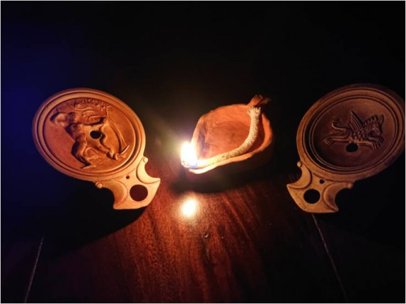 Nach einem kurzen Rundgang kannst du dein eigenes Öllämpchen aus selbsttrocknendem Ton formen und Licht in das Dunkel bringen.